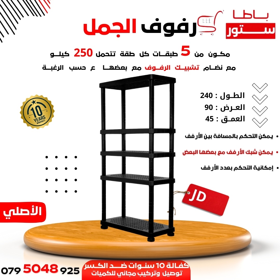 رفوف الجمل مكون من 4 طبقات كل طبقة تتحمل 250 كيلو لامع نظام تشبيك الرفوف مع بعضها ع حسب الرغبة