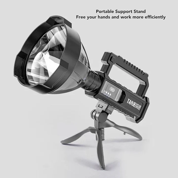 كشاف لوكس قوي وعالي الأداء، يعمل بالشحن وقابل للاستخدام كباور بانك لشحن الأجهزة الأخرى. مثالي للاستخدام في التخييم، الرحلات، الصيد، الطوارئ، والعمل في الأماكن منخفضة الإضاءة.
